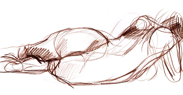 Elävän mallin piirustuksia, hiili ja akvarellikynä paperille, 2013